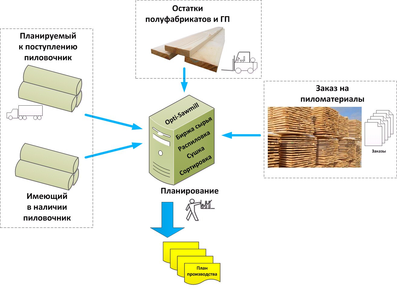 В системе Opti-Sawmill реализованы лучшие практики отрасли и специальные математические алгоритмы, что позволяет обеспечить скоординированное планирование работы лесопильного цеха, линии сортировки брёвен, участков сушки и сортировки пиломатериалов, включая оптимизацию и отслеживание заказов покупателей, планирование поставок сырья и другие процессы лесопильных и деревообрабатывающих предприятий.